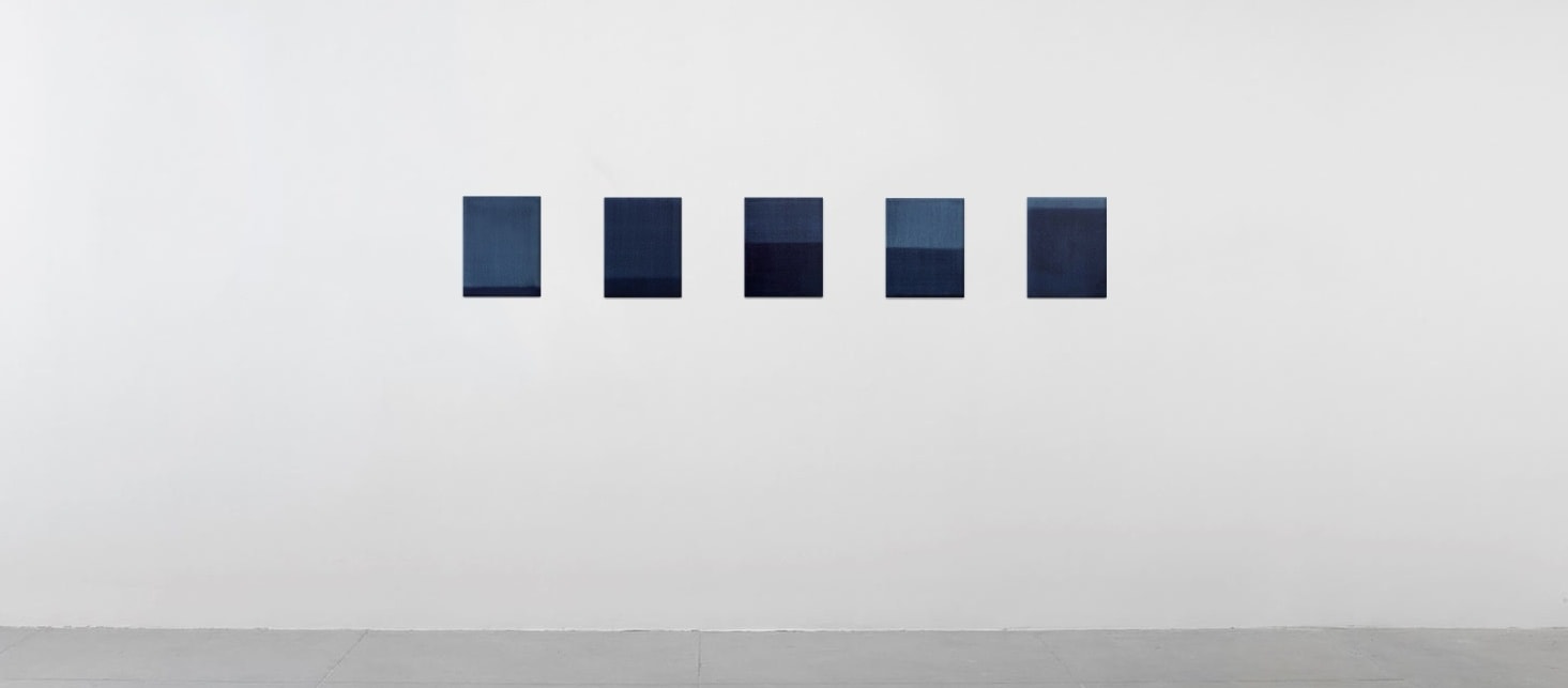 Arguably one of the most important aspects of Makino’s painterly practice is the intensity of colour. She uses a single dye to achieve a range of indigo blue hues, working on wooden panels primed with a traditional gesso using gofun – also known as shell lime. Doing so, the Japanese artist is able the create subtle textures and reliefs on her surface, before soaking the panel with an intense indigo dye.